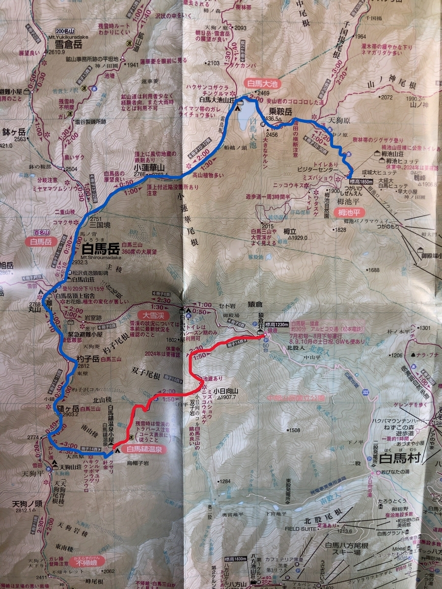 計画を1度立てた後に白馬大雪渓通行止めの報が入り、急遽宿泊場所を白馬尻から白馬鑓温泉に変更したのだった。